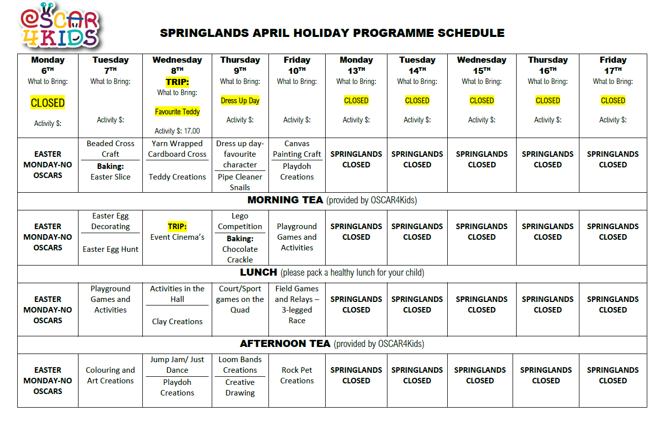SPRINGLANDS APRIL HOLIDAY PROGRAMME 2026